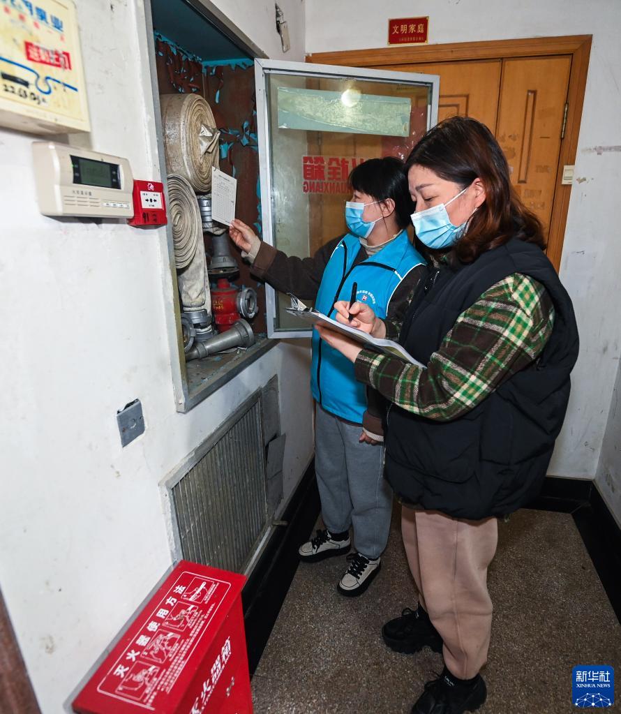 1月12日,在飛英街道河畔居小區內,社區安全生產(chǎn)負責人聯(lián)合網(wǎng)格員開(kāi)展節前消防安全檢查。