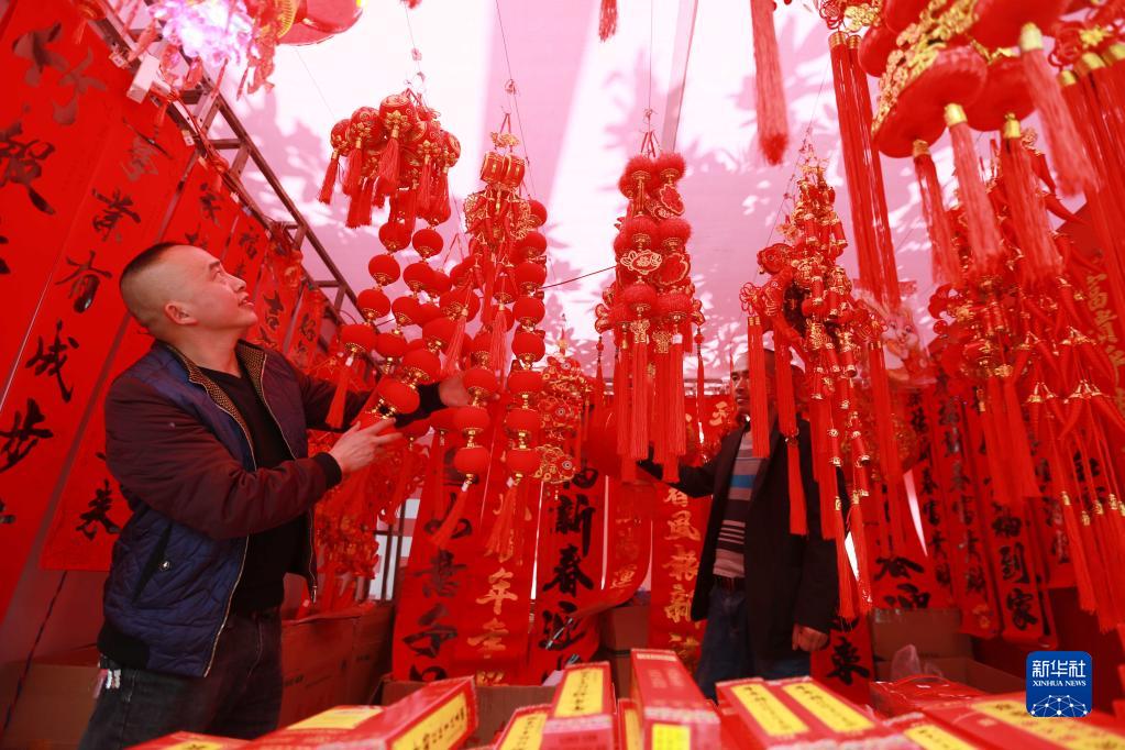 臨近春節,各地年貨市場(chǎng)熱熱鬧鬧,人們忙著(zhù)選購新春飾品。
