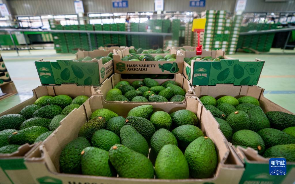 牛油果在云南省孟連縣牛油果分揀車(chē)間內完成分揀包裝(2022年11月17日攝)。