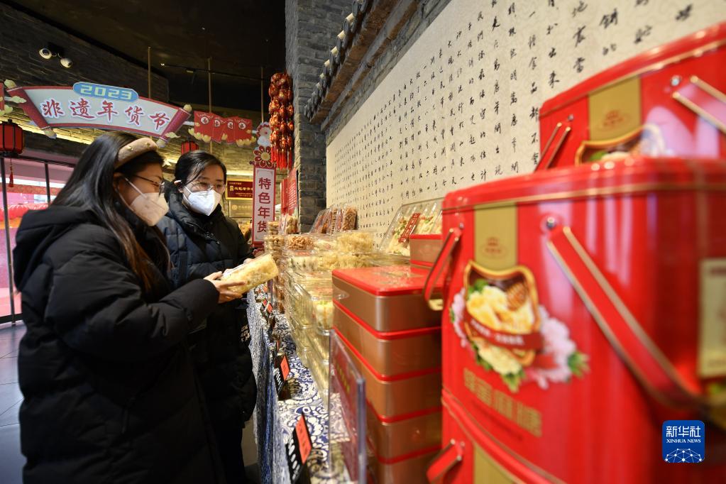 1月12日,顧客在河北省唐山市豐潤區2023“非遺”年貨節上選購商品。