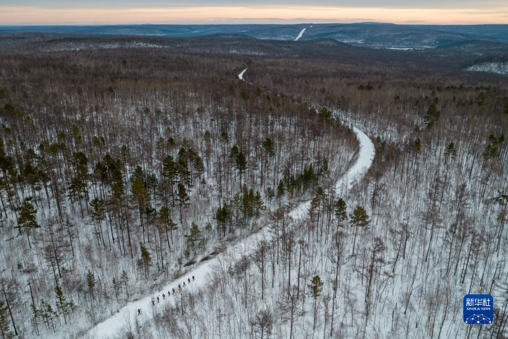 這是1月11日拍攝的森林撫育工人前往山林內的撫育作業(yè)點(diǎn)(無(wú)人機照片)。