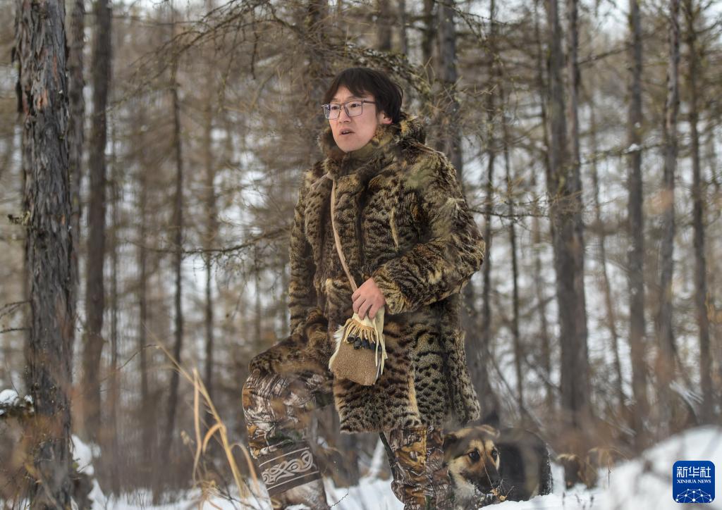 1月12日,覺(jué)樂(lè )在山林深處踩著(zhù)厚厚的積雪去尋找自己的鹿群。新華社記者 彭源 攝