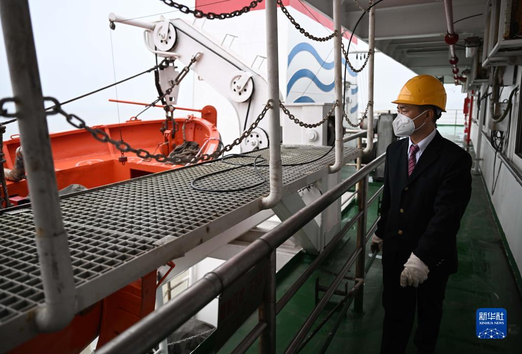 在粵海鐵路輪渡上,李雄檢查船上設施(1月9日攝)。