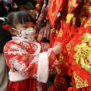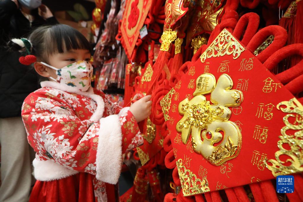 1月13日,小朋友在貴州省貴陽(yáng)市開(kāi)陽(yáng)縣一家超市選購春節飾品。