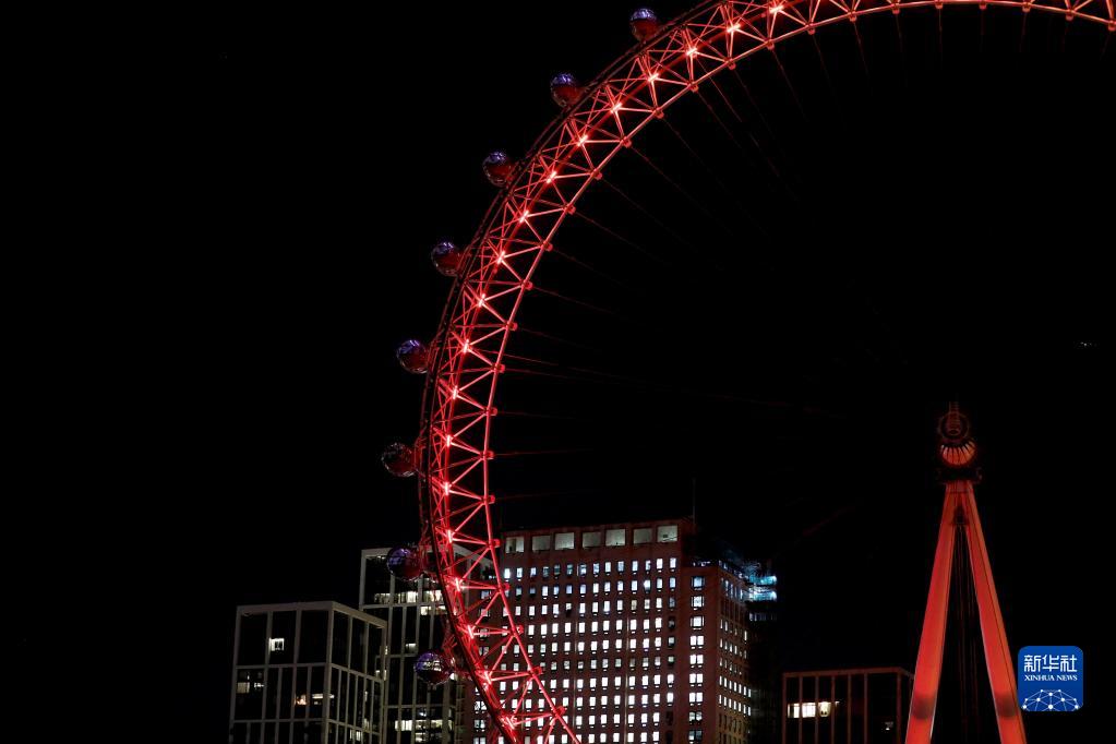 當晚,英國倫敦地標建筑、巨型摩天輪“倫敦眼”亮起紅色燈光,迎接中國農歷新年的到來(lái)。