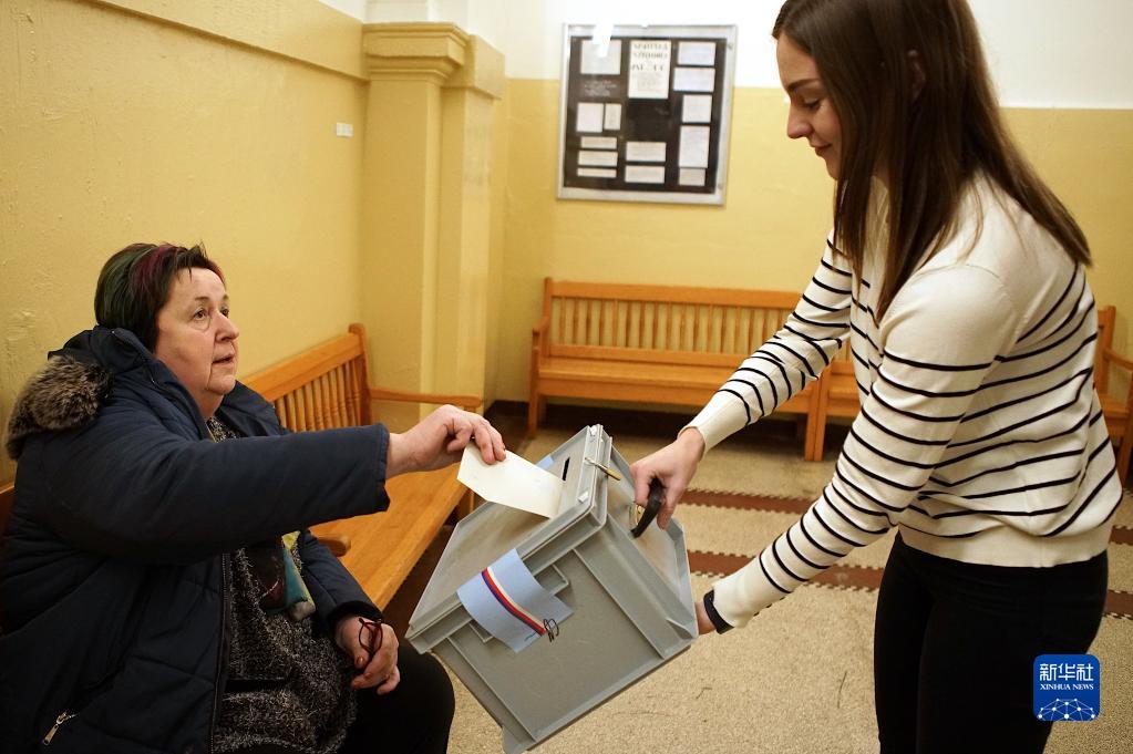 1月13日,選民在捷克布拉格一處投票點(diǎn)投票。