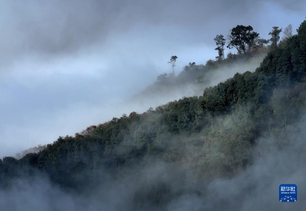 1月14日,福州市晉安區鼓嶺,山間霧氣彌漫(無(wú)人機照片)。