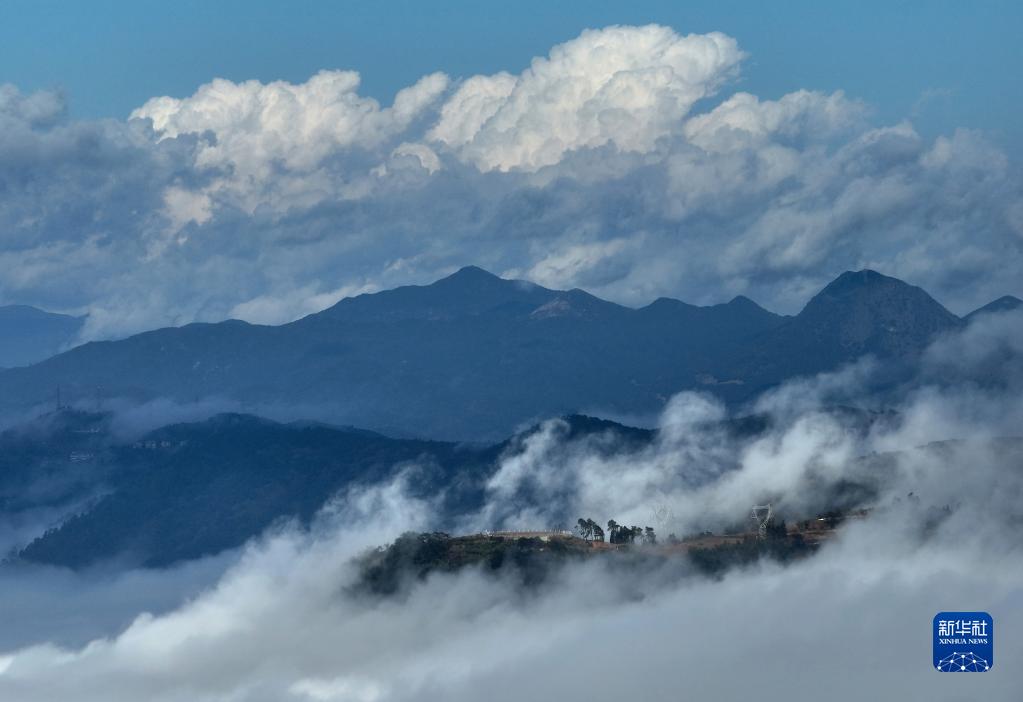 1月14日,福州市晉安區鼓嶺,山間霧氣彌漫(無(wú)人機照片)。