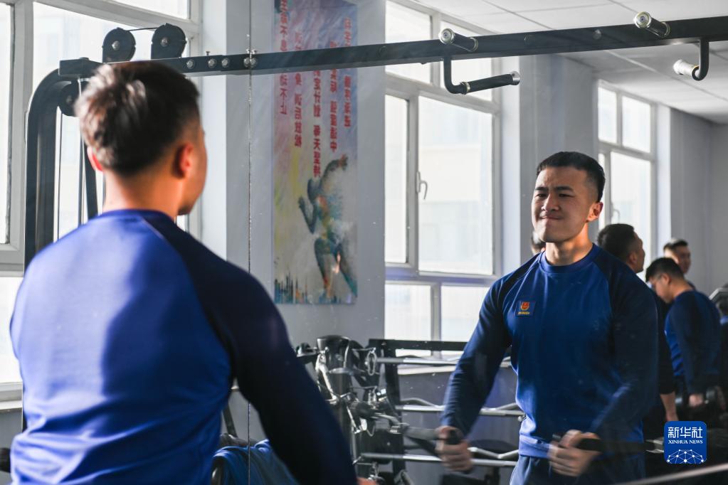 1月6日,西烏珠穆沁旗消防救援大隊的消防員進(jìn)行室內訓練。