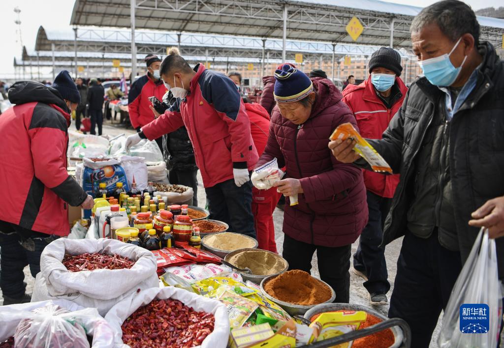 當日是農歷小年,陜西省延安市寶塔區青化砭鎮的年貨大集熱鬧非凡,眾多村民到此趕大集、辦年貨。