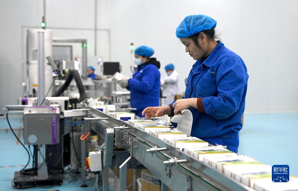 1月13日,西安市閻良區秦龍乳業(yè)集團有限公司的工人在羊奶粉生產(chǎn)線(xiàn)上作業(yè)。