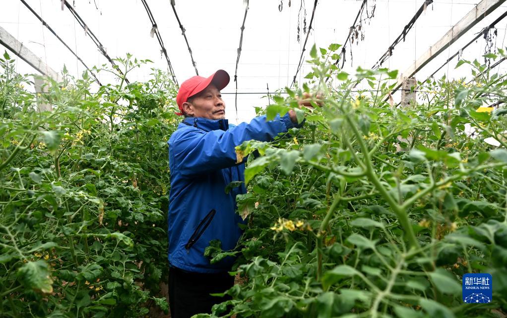 1月13日,工人在西安市高陵區何村的蔬菜大棚里管護蔬菜。