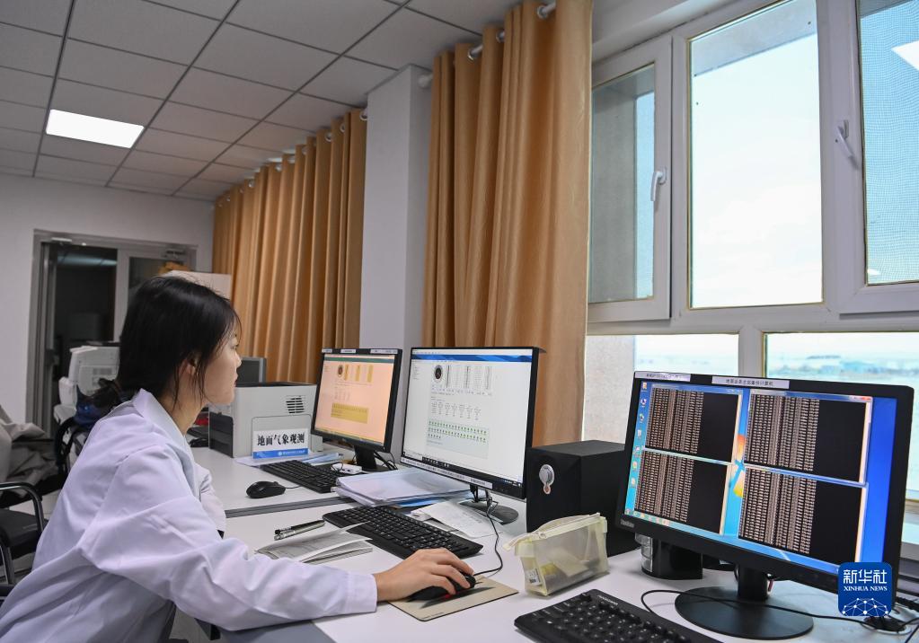 1月8日,阿克達拉國家大氣本底站觀(guān)測員董垠希在值班室對相關(guān)數據傳輸情況進(jìn)行檢查。