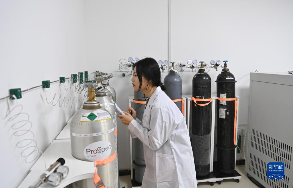 1月8日,阿克達拉國家大氣本底站觀(guān)測員董垠希在實(shí)驗室填寫(xiě)鋼瓶壓力值班記錄。
