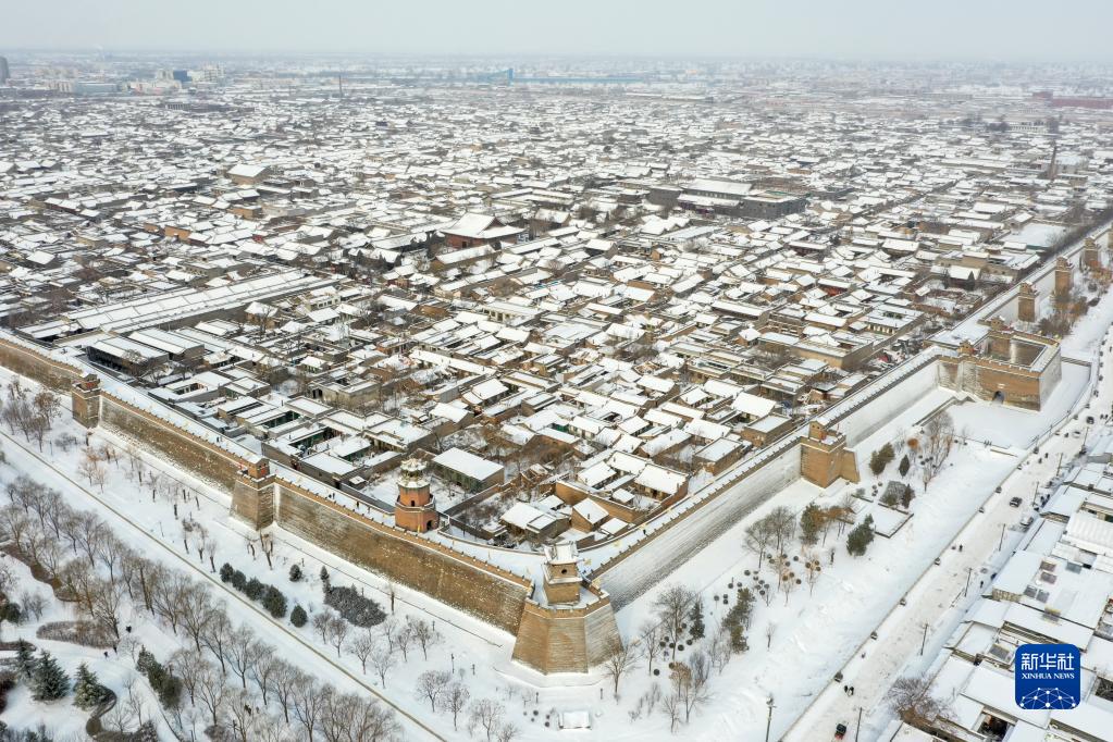 近日,位于山西省晉中市的平遙古城迎來(lái)降雪天氣,古城銀裝素裹,美如畫(huà)卷。