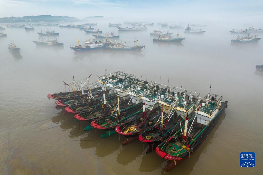 寒潮來(lái)襲,浙江省溫嶺市石塘鎮中心漁港眾多漁船進(jìn)港,躲避寒潮大風(fēng)天氣。新華社發(fā)(徐偉杰 攝)