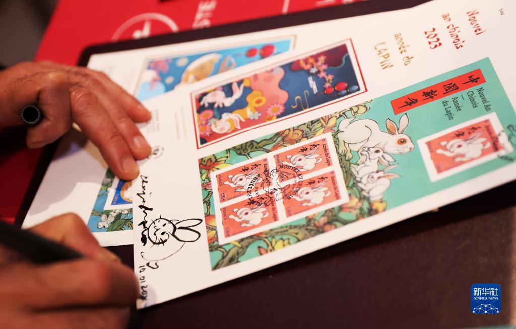 為迎接中國農歷新年,法國郵政公司14日在巴黎舉行中國兔年生肖紀念郵票發(fā)行儀式。中國兔年生肖紀念郵票共兩款,由法國華人藝術(shù)家陳江洪設計。新華社記者 高靜 攝