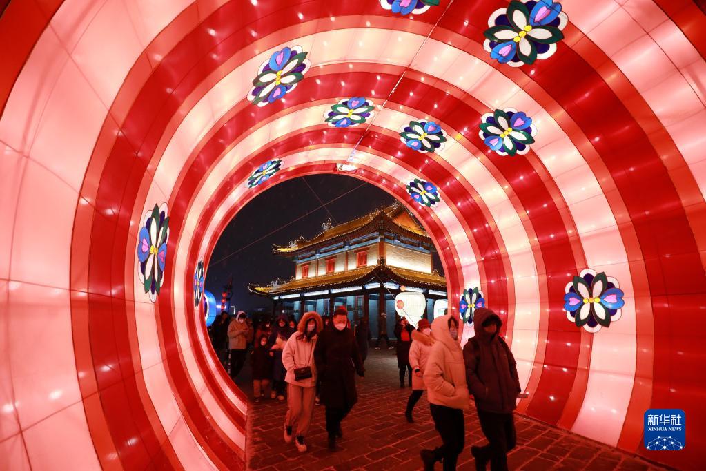 1月14日,人們在第36屆西安城墻新春燈會(huì )上參觀(guān)游玩。