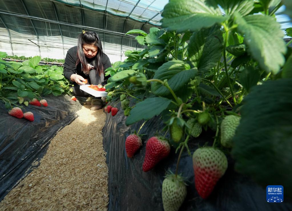 春節臨近,河北省昌黎縣種植的1萬(wàn)多畝大棚草莓陸續進(jìn)入采摘期,果農加緊采摘,供應市場(chǎng)。