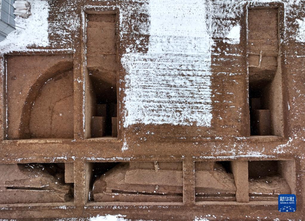 這是河南漢魏洛陽(yáng)城宮城遺址內的北魏時(shí)期倉窖遺跡(1月14日攝,無(wú)人機照片)。