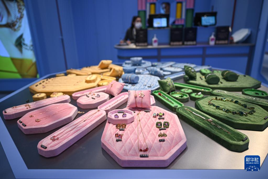 在中免集團??趪H免稅城拍攝的離島免稅品(2022年12月17日攝)。