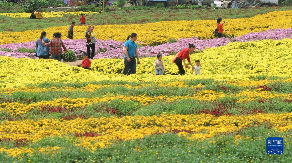 2018年富民村首屆菊花節現場(chǎng),游客在富民村賞花(資料照片)。