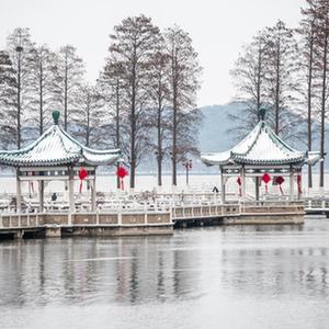 1月15日拍攝的武漢黃鶴樓景區雪景(無(wú)人機照片)。