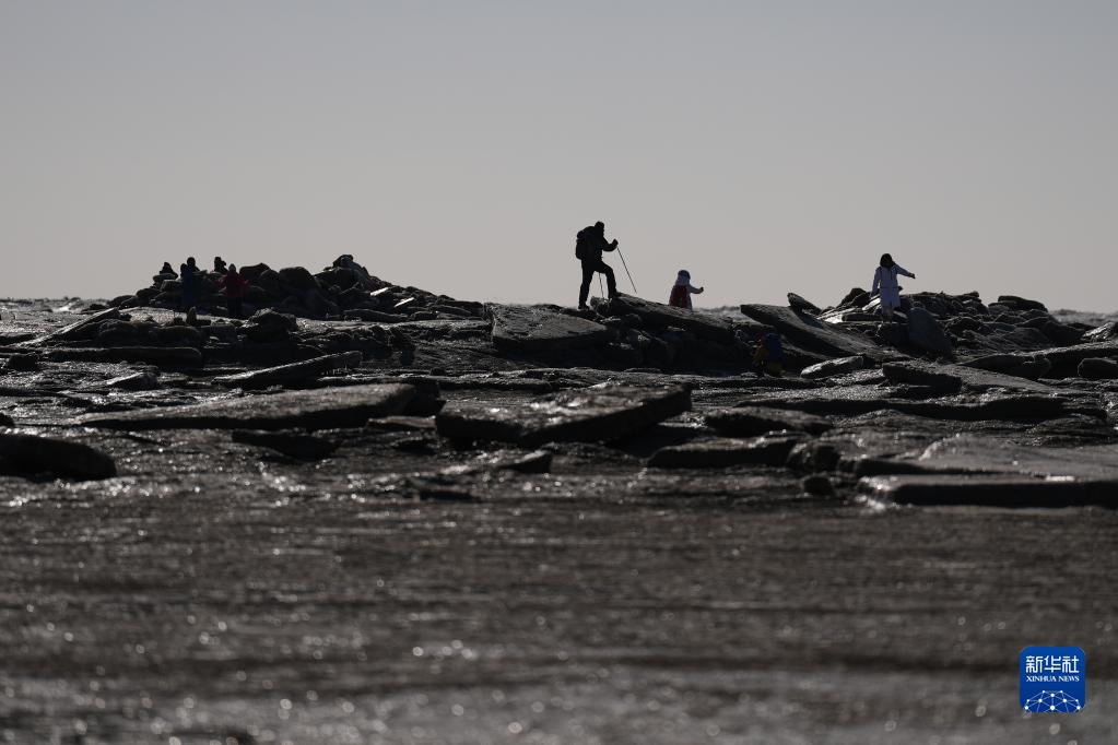 1月15日,業(yè)余選手在體驗冰凌徒步。