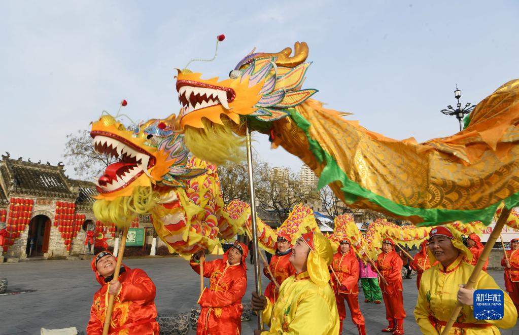 春節臨近,安徽省亳州市舉辦民俗表演迎新春活動(dòng),民間藝人表演舞龍、斗驢、抬花轎、扭秧歌等民俗節目,迎接新春佳節的到來(lái)。