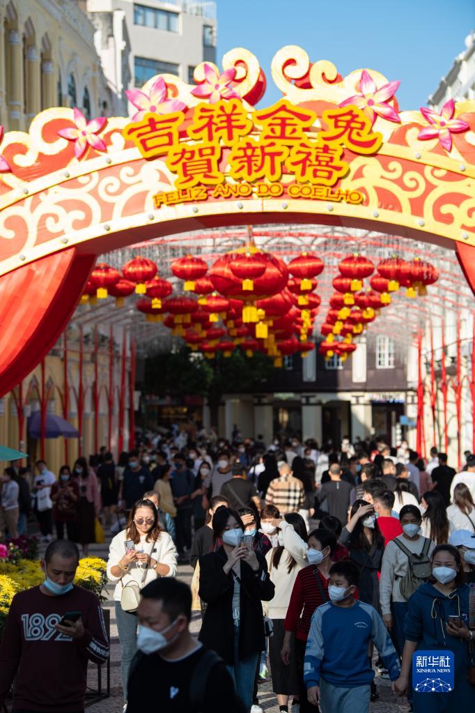1月14日,游客在澳門(mén)議事亭前地游覽。新華社記者 張金加 攝