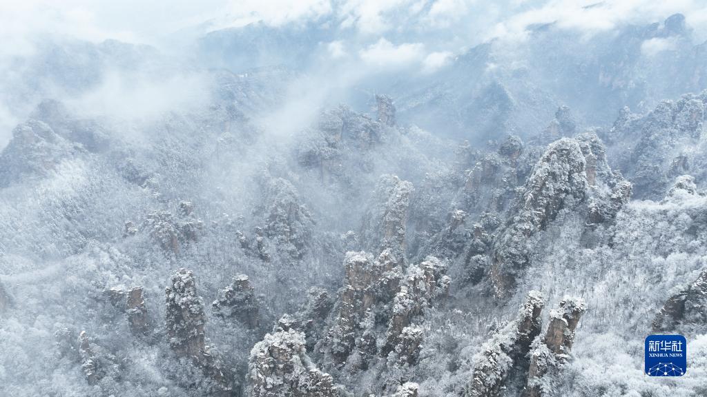 1月16日拍攝的張家界天子山雪景(無(wú)人機照片)。