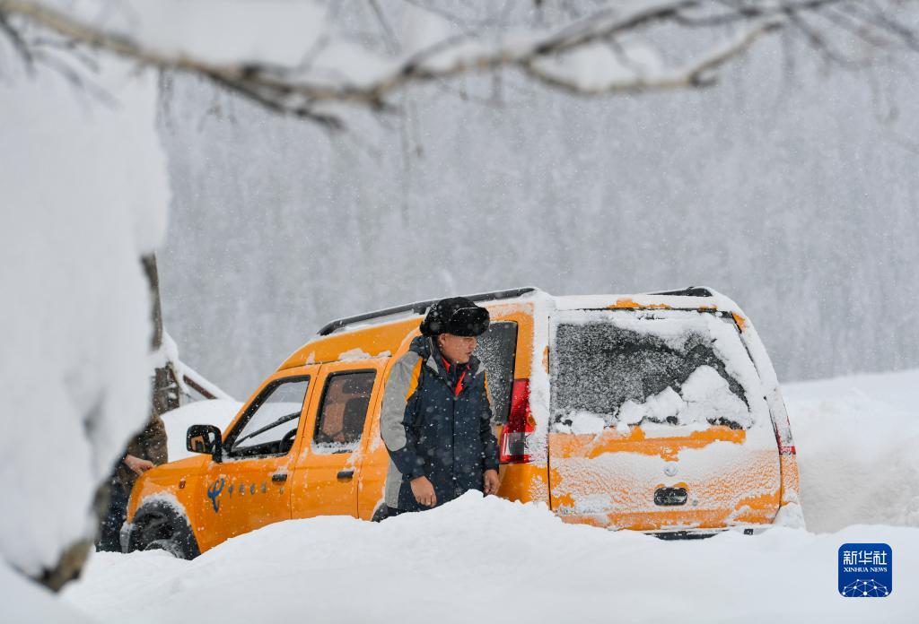 新疆阿勒泰地區電信公司員工卡力哈爾·沙哈提前往禾木村一處牧業(yè)點(diǎn)檢修基站(1月6日攝)。