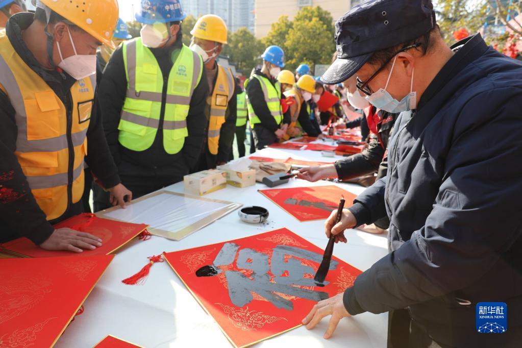 春節臨近,多地組織書(shū)法志愿者走進(jìn)社區、工地等場(chǎng)所,為人們書(shū)寫(xiě)春聯(lián)和福字,迎接春節的到來(lái)。
