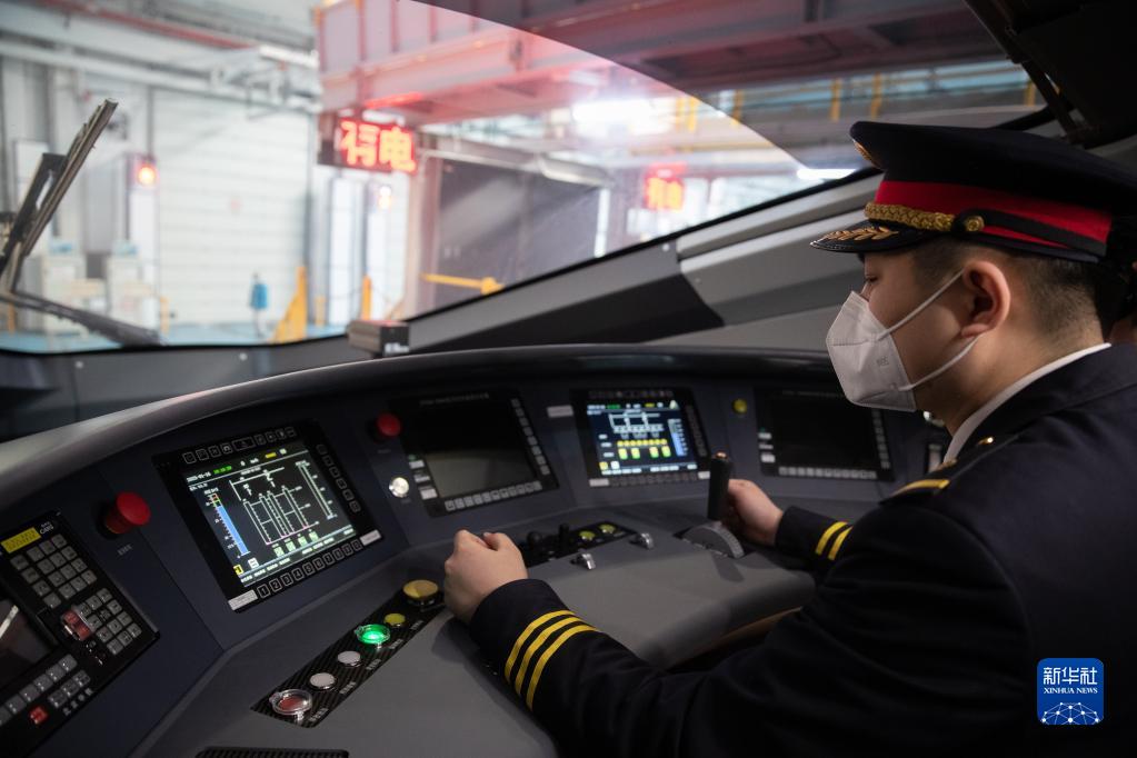 1月16日,工作人員在CR400BF-GZ型復興號高寒智能動(dòng)車(chē)組駕駛室內進(jìn)行調試。