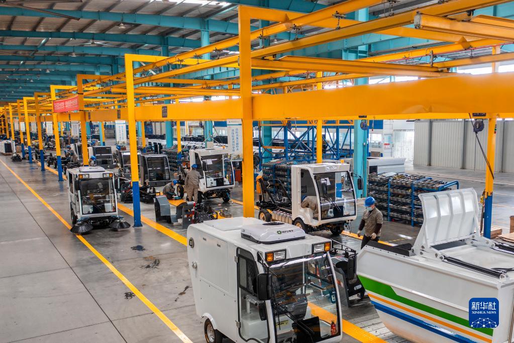 1月12日,在安徽省蕪湖市繁昌經(jīng)濟開(kāi)發(fā)區,工人在新能源電動(dòng)清掃車(chē)生產(chǎn)車(chē)間內忙碌。