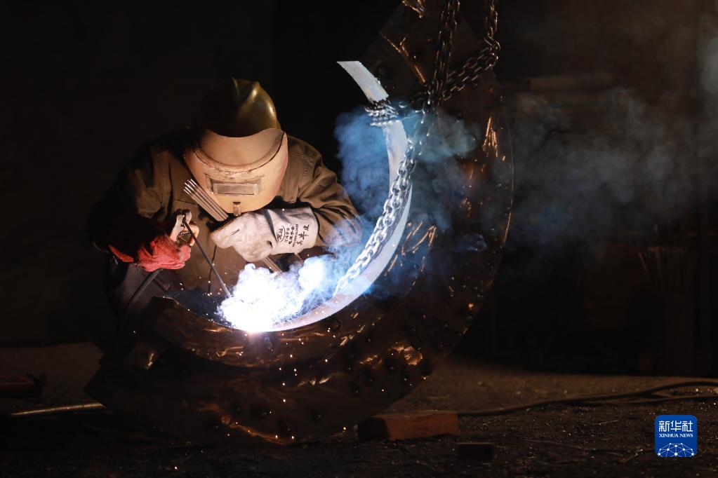 1月10日,在浙江省杭州市臨安區天目山鎮一家制造廠(chǎng)內,工人進(jìn)行焊接作業(yè)。