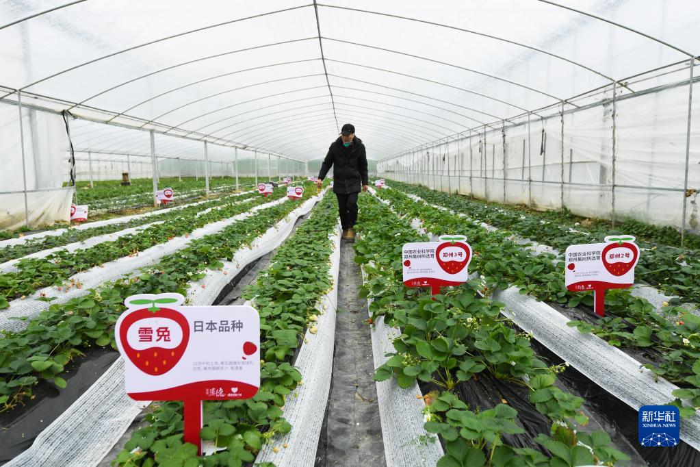 1月17日,浙江省建德市楊村橋鎮草莓種植大戶(hù)吳東良在大棚內查看引進(jìn)的新品種草莓苗。