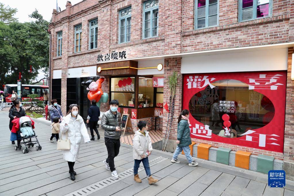 人們在福州煙臺山商業(yè)漫步街區游玩(1月16日攝)。