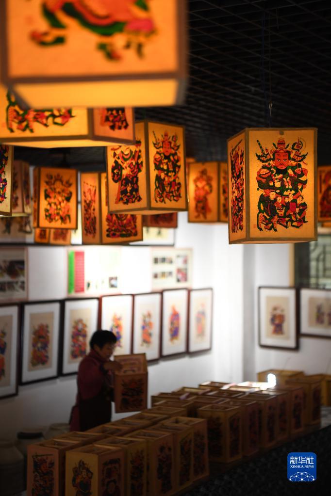 1月17日,在灘頭鎮福美祥年畫(huà)作坊,年畫(huà)藝人尹冬香在整理年畫(huà)制成的燈籠。