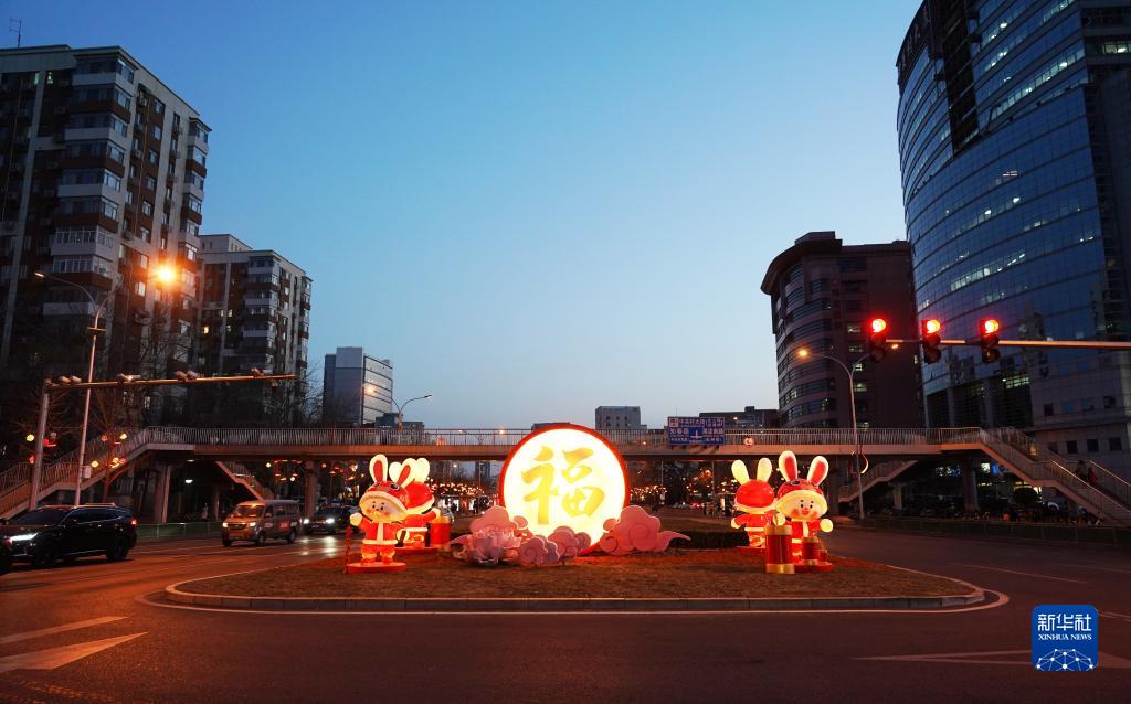 在海淀區中關(guān)村大街布置的節日景觀(guān)(1月16日攝)。