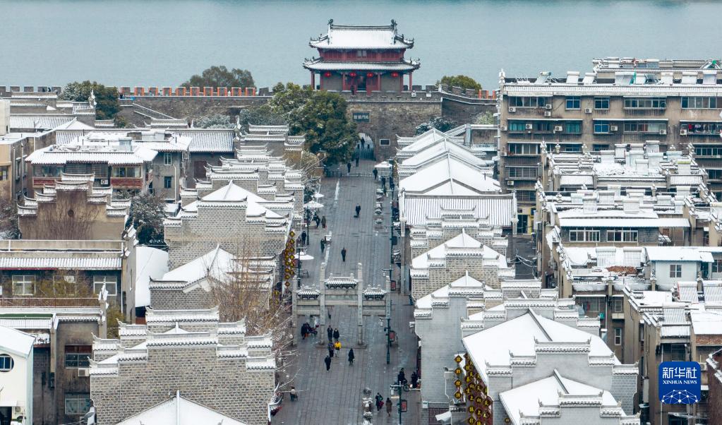 1月15日拍攝的湖北襄陽(yáng)古城雪景(無(wú)人機照片)。