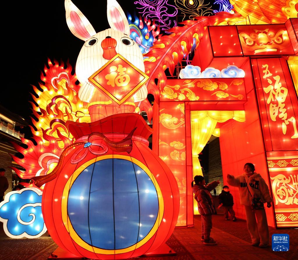 春節臨近,山東省臨沂市郯城縣大街小巷流光溢彩,洋溢著(zhù)濃濃的年味。