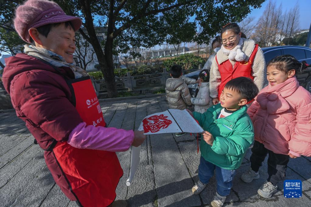 臨近春節,浙江省湖州市長(cháng)興縣李家巷鎮中心幼兒園的教師志愿者帶領(lǐng)孩子開(kāi)展以“巧手剪紙迎兔年”為主題的迎新年民俗活動(dòng)。孩子們在老師的指導下剪出各種福兔剪紙,并將福兔剪紙作品送到周邊村民手中,表達辭舊迎新的美好愿望。