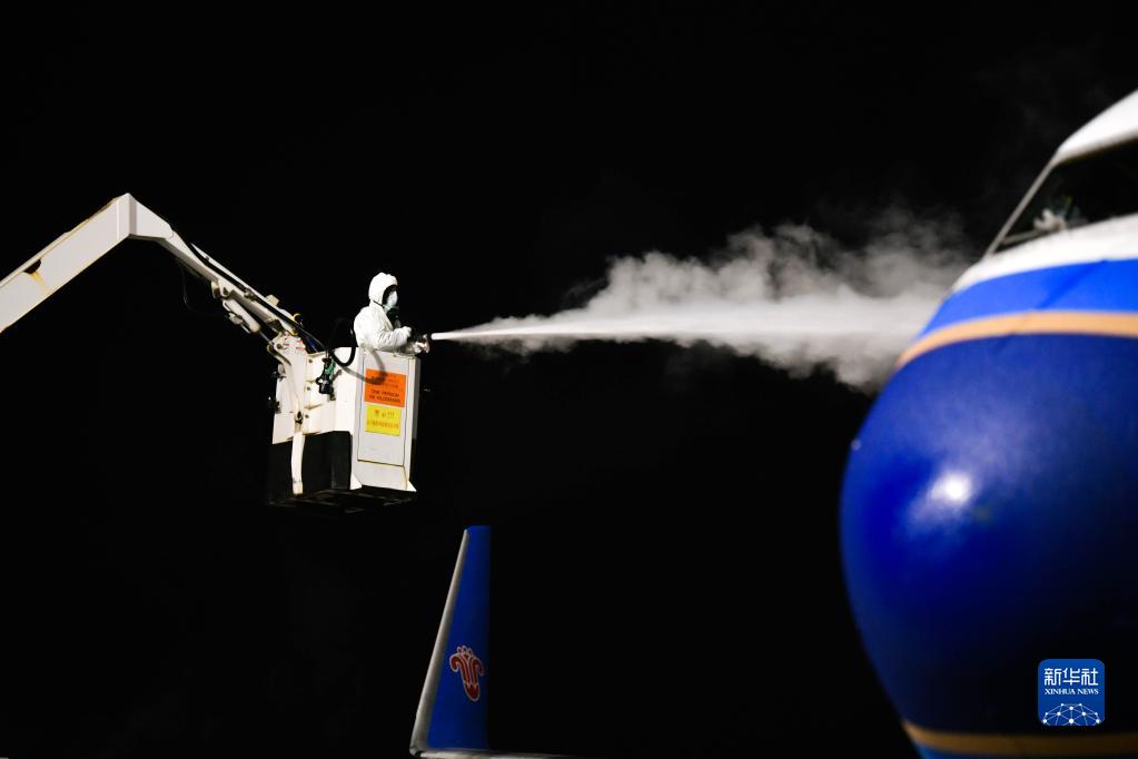 新華全媒+·新春走基層丨嚴寒下的航班守護者——走近深夜里的飛機“除冰師”