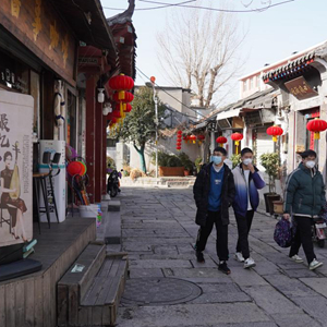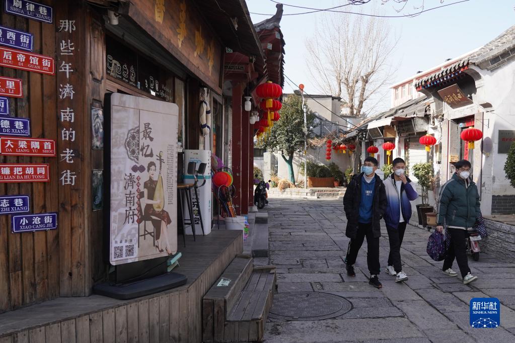 1月18日,人們在濟南曲水亭歷史文化街道游覽。