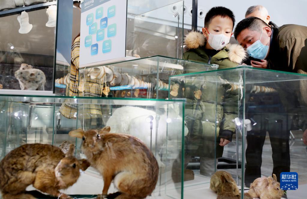 1月18日,參觀(guān)者在一組兔類(lèi)標本展品旁駐足觀(guān)看。