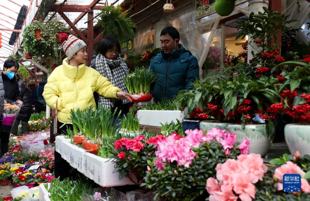 1月18日,市民在上海徐匯區的一家花卉市場(chǎng)內選購年宵花卉。