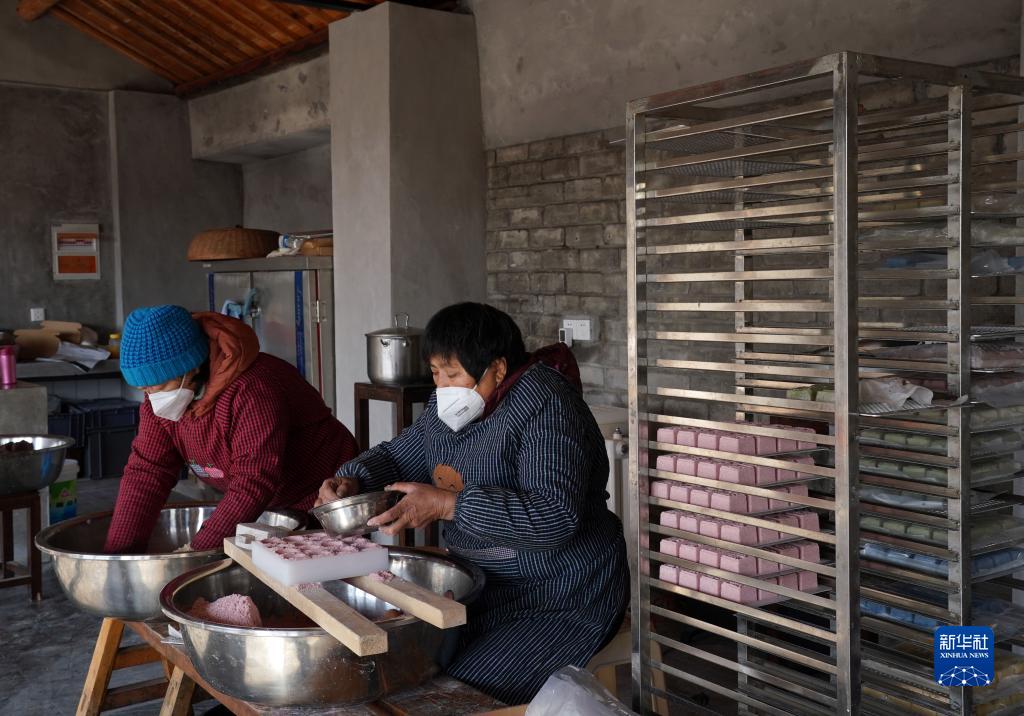 1月17日,在青浦區練塘鎮的米樂(lè )農莊,居民趕制傳統特色糕點(diǎn)奘糕。