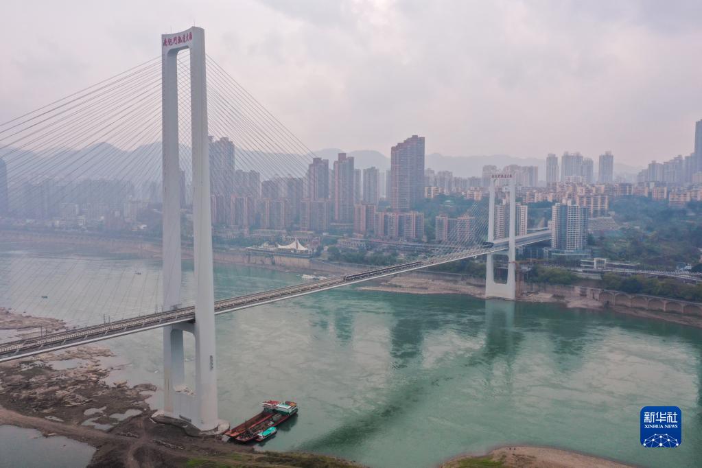 1月18日,重慶軌道交通10號線(xiàn)列車(chē)通過(guò)南紀門(mén)軌道大橋(無(wú)人機照片)。