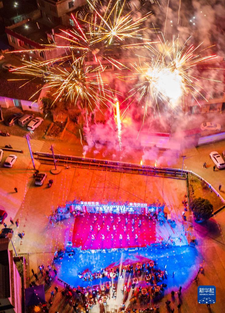 1月17日拍攝的“村晚”活動(dòng)現場(chǎng)(無(wú)人機照片)。
